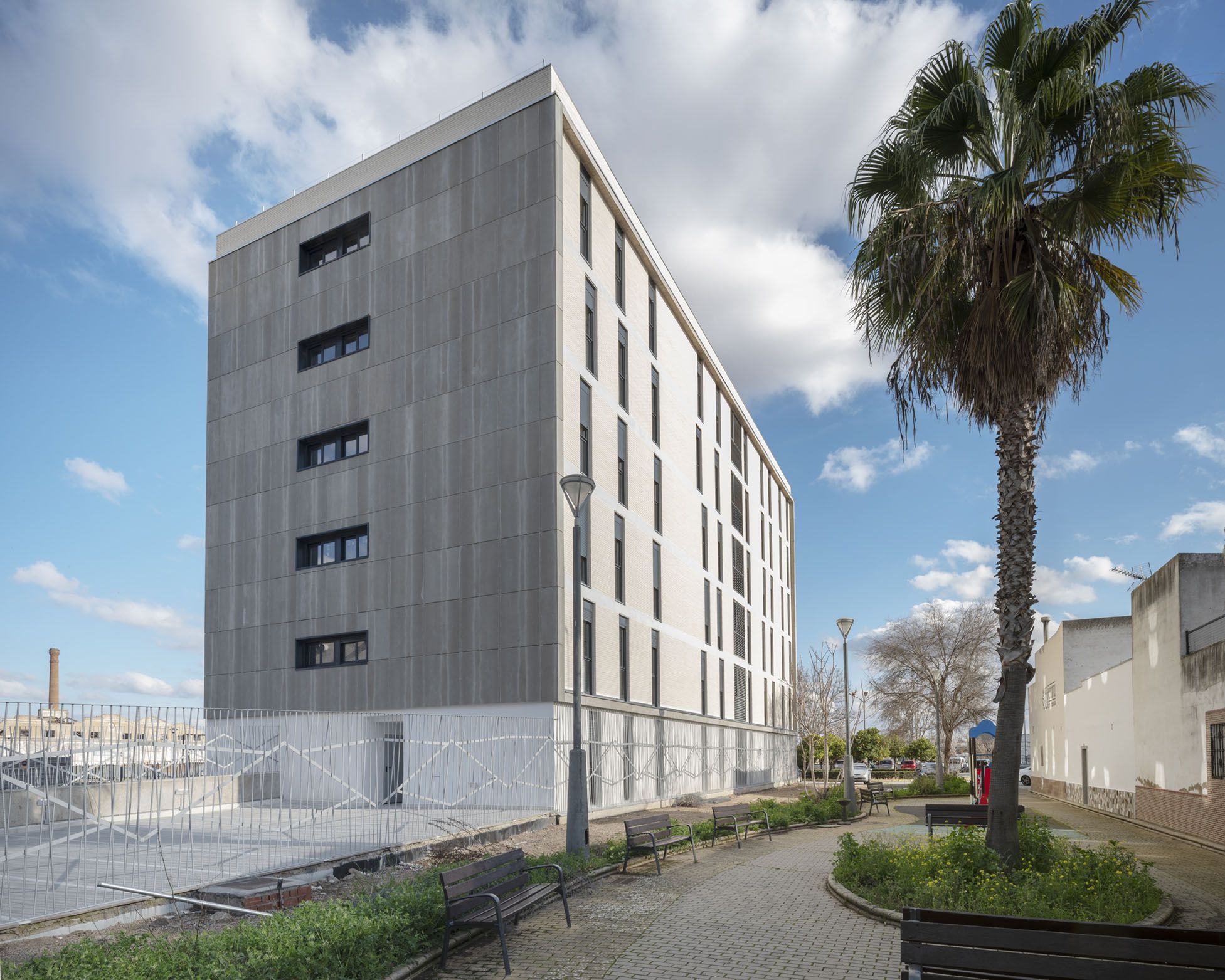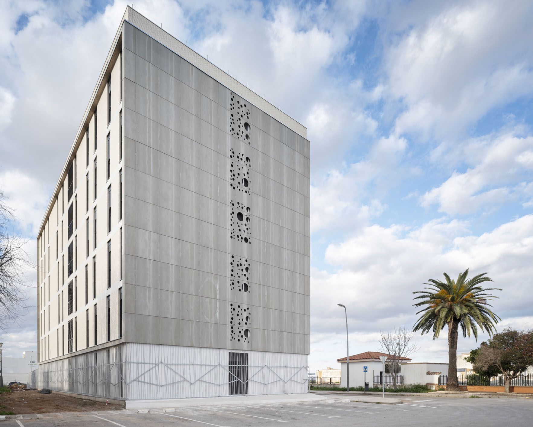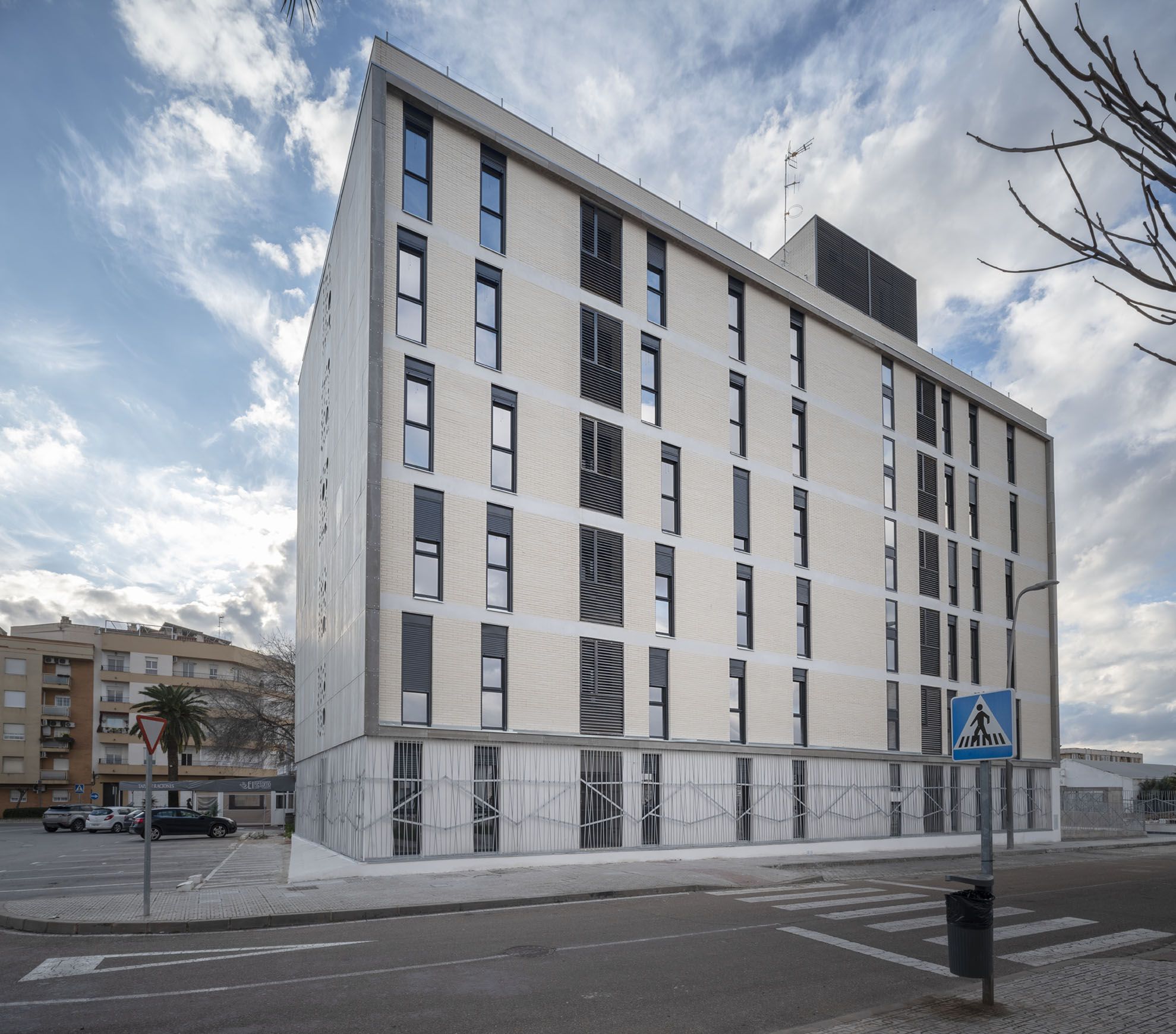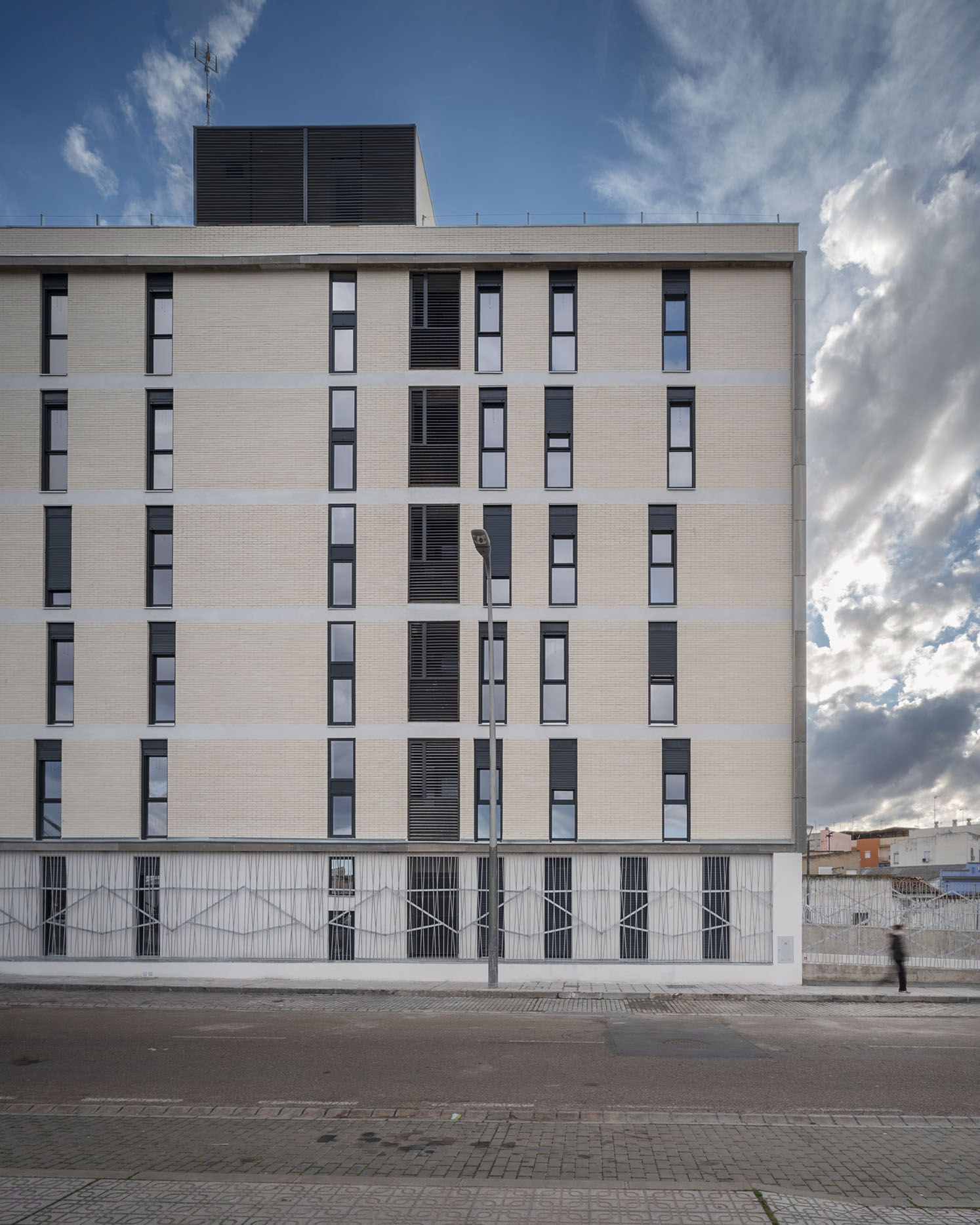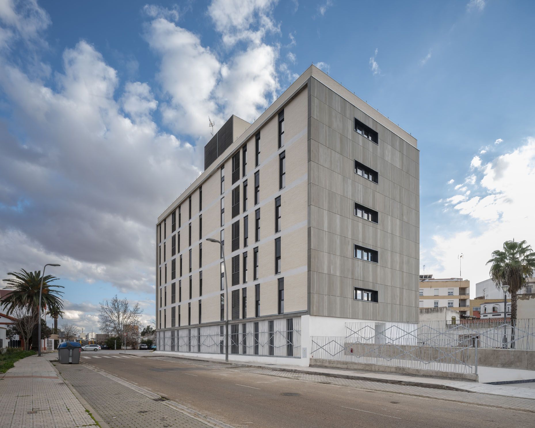 Esta promoción de 24 viviendas públicas nueva construcción en Almendralejo (Badajoz) se desarrolla en un bloque de seis plantas sobre rasante y una bajo rasante destinada a 24 plazas de garaje.